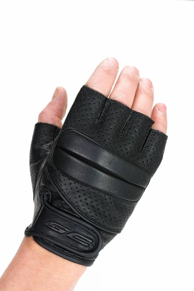 Soepele “topless” lederen handschoen met geperforeerde bovenzijde.