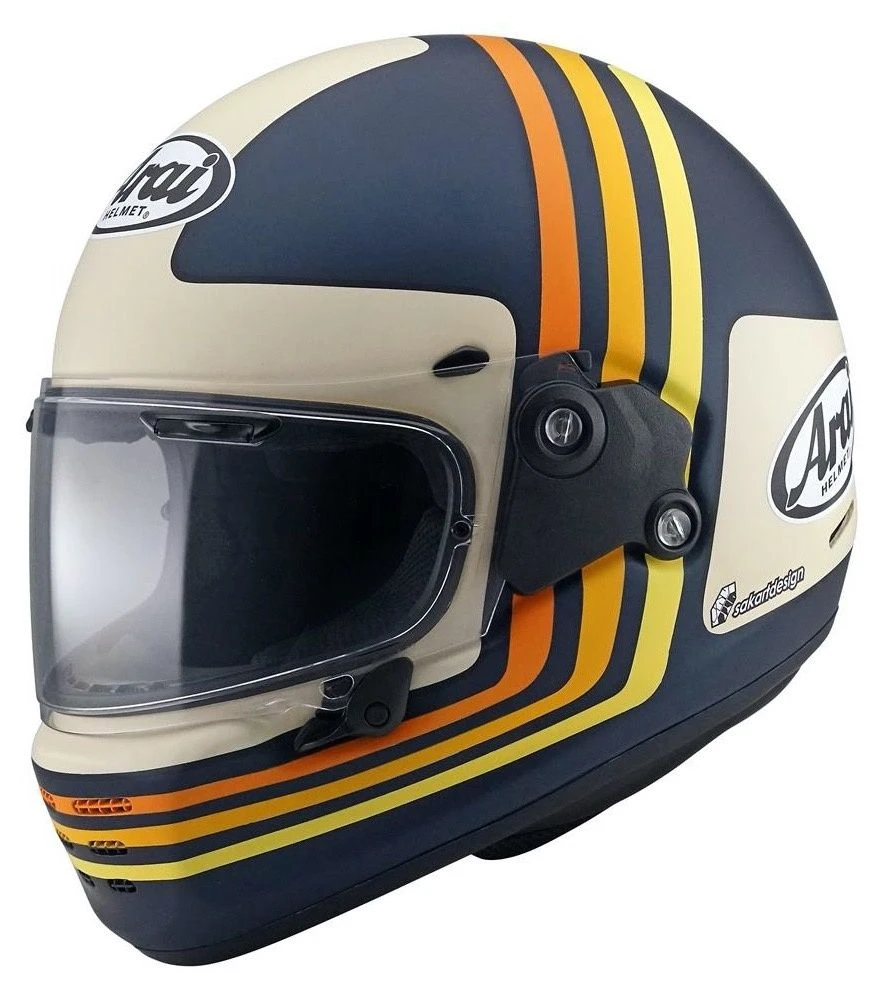 De Arai Concept-X Dream motorhelm combineert iets dat niet veel helmen in het retrosegment lukt: looks mixen met performance. Geheel volgens de designfilosofie zoals alleen Arai die naleeft. Het uiterlijk uit de jaren ’80 doet je verbazen over het draagcomfort voor een goede dag cruisen. Het standaard heldere vizier is uitgevoerd met de kenmerkende ‘Brow vents’ en is uitgevoerd met een MaxVision Pinlock. Onderscheid jezelf op j e naked, caféracer of gewoon als je fan bent van de eighties